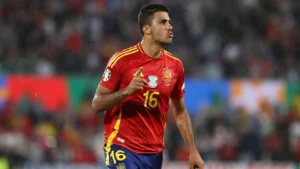 In the 39th minute, Spain finally made a breakthrough. Rodri capped a well-worked combination to find the bottom corner with a low left-footed drive from the edge of the penalty area.